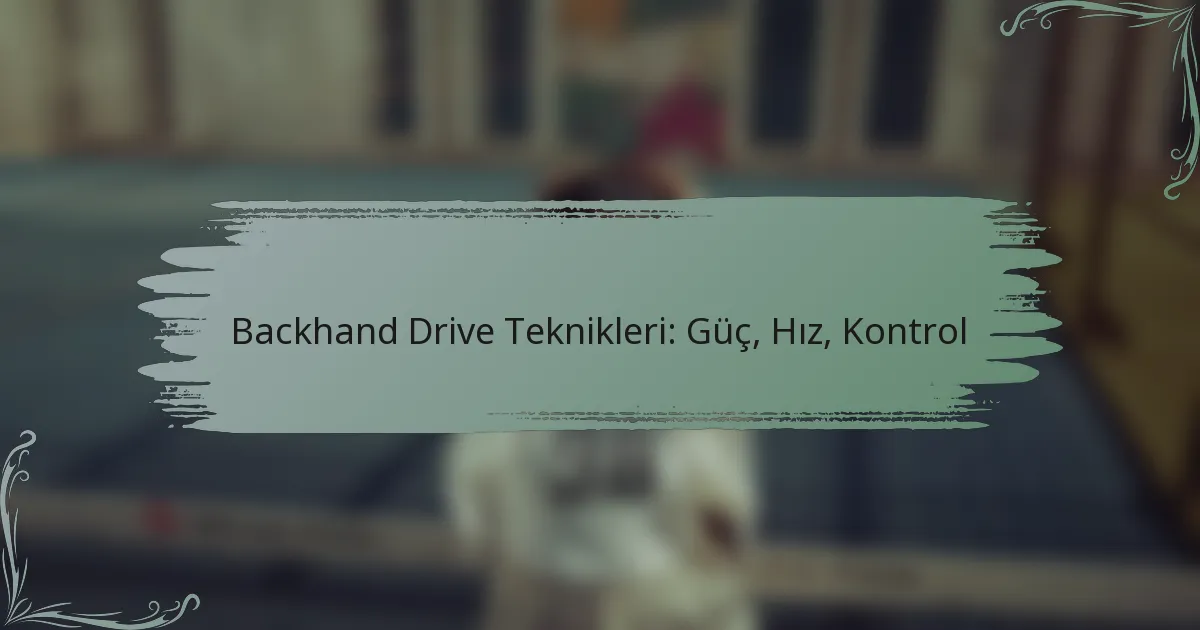 Backhand drive, tenis oyununda güç, hız ve kontrolü birleştiren kritik bir vuruştur. Bu tekniği ustalaşmak, vuruş mekaniği, beden pozisyonu ve takip hareketi hakkında sağlam bir anlayış gerektirir; ayrıca performansı artırmak için hedeflenmiş antrenmanlar yapılmalıdır. Ayak hareketini ve zamanlamayı optimize ederek, oyuncular vuruşlarının hızını artırabilirken, tutuş ayarlamaları ve zihinsel imgeler doğruluğu ve tutarlılığı önemli ölçüde geliştirebilir.