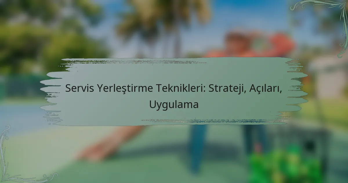 Servis yerleştirme teknikleri, tenis ve voleybol gibi sporlarda rekabet avantajı elde etmek için servislerin konumlandırılmasına yönelik temel stratejilerdir. Rakibinizin oyun stilini analiz ederek ve yaklaşımınızı uyarlayarak, servisinizin etkinliğini ve genel performansınızı artırabilirsiniz. Zayıflıkları istismar eden ve güçlü yönlerinizi kullanan açılara odaklanmak, zorlayıcı dönüşler yaratacak ve her puanda başarı için zemin hazırlayacaktır.