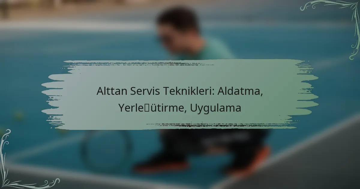 Alttan servislerde aldatma, rakipleri servisin yörüngesi ve yerleştirmesi hakkında yanıltan teknikler kullanmayı içerir. Etkili stratejiler, sürpriz unsuru yaratabilir ve alıcının topun yolunu tahmin etmesini ve uygun şekilde yanıt vermesini zorlaştırabilir.